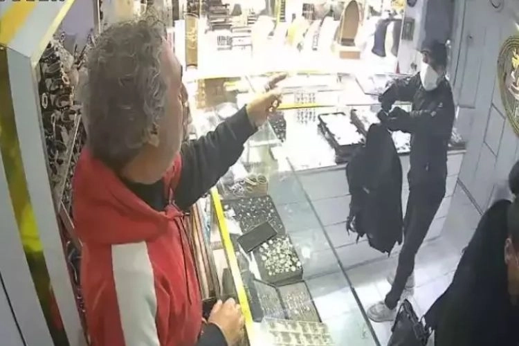 Soygun anı güvenlik kameralarına yansıdı. Görüntülerde, şüphelinin, "çabuk doldur, nakit de koy" diyerek silah doğrulttuğu ve kuyumcu sahibinin, "sakin ol" diyerek altınları çantasına koyduğu anlar yer aldı.